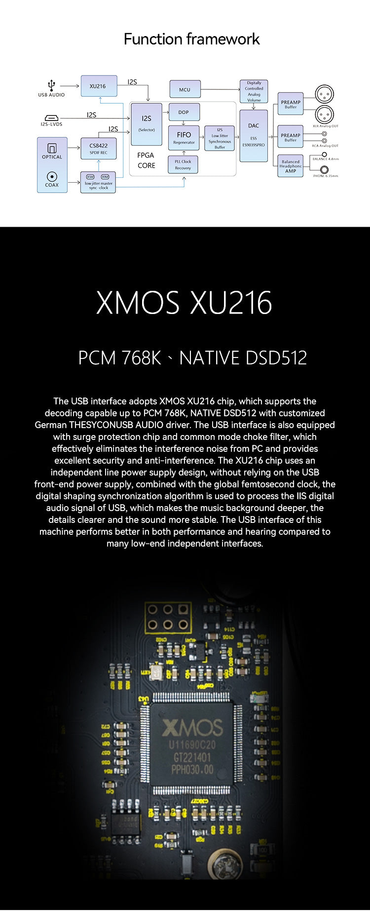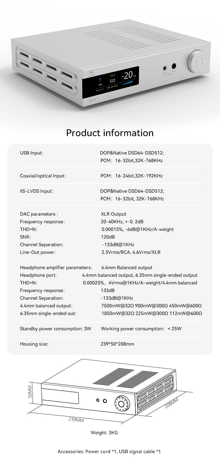 J.C Acoustics UDP-6P ES9039SPRO Desktop DAC & Headphone Amplifier