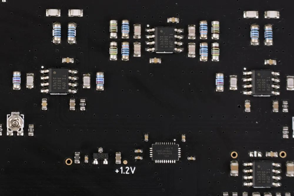 The output section adopts 4 pieces of OPA1612 high-end dual op-amp chips, and audio-grade components, giving the Q2.1SE higher sound quality, and more vivid and atmospheric music performance. In addition, also built-in specially designed low-noise switching power supply, discrete components linear power supply and multiple analog circuits low-noise power supply, the impact of undesirable interference as far as possible will be minimized.