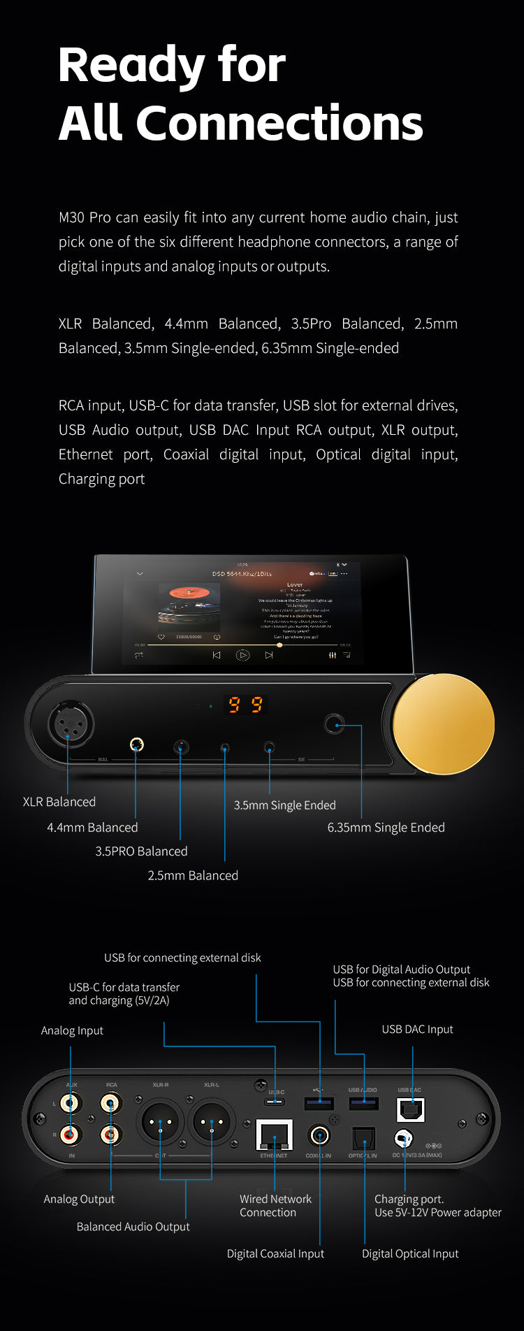 SHANLING M30 PRO Dual AK4497EQ DAC & Headphone Amplifier & Music Streamer