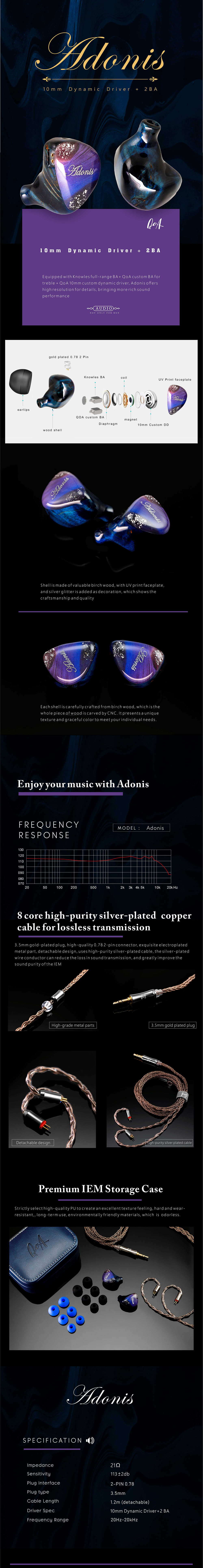 KINERA QOA Adonis 10mm DD+2BA In-ear Headphone