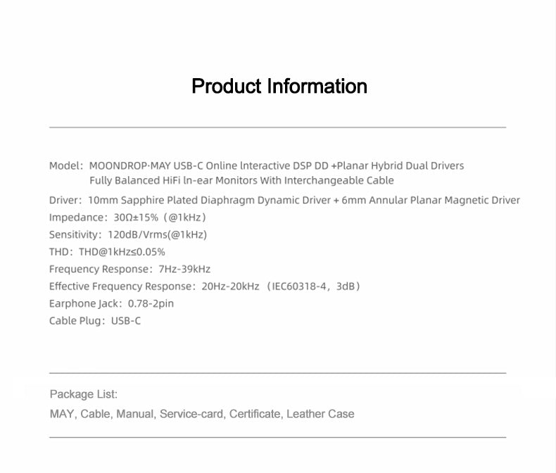 MOONDROP MAY Dynamic Driver + Planar Driver In-ear Headphone