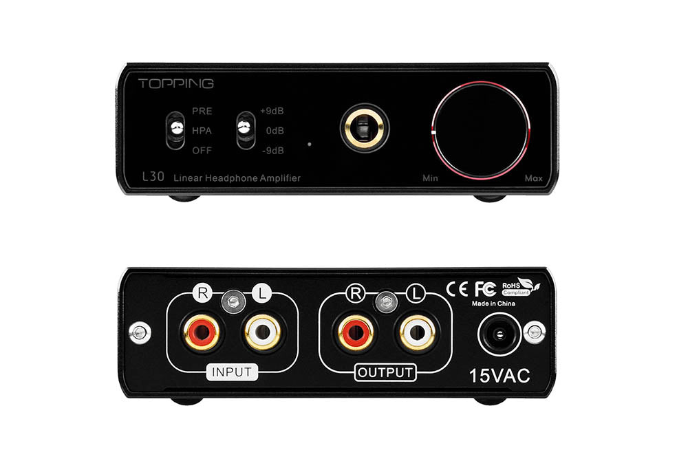 3 step gain settings: L30 is equipped with three gain settings of -9.9dB/0dB/9.5dB.Wide range of gain settings and the 0.3uVrms ultra-low noise makes L30 easily adapt to all types of headphones from extremely sensitive IEMs to most power demanding full-sized over-ears.